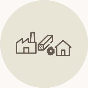 木造でも広いスパンを可能にする技術力で、集会所・食堂・シェアスペースを設けた集合住宅にも対応。福祉施設・学生寮・シェアハウス等にも展開できます。