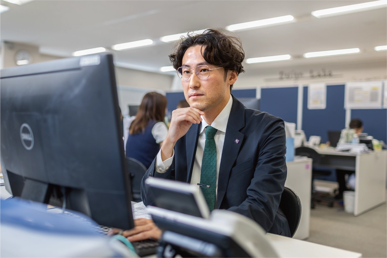 所属する設計部申請課は私を含めて担当3名です。私は戸建住宅の申請を担当しており、この4月からは課長補佐として部下に業務指導を行う立場となりました。上司である課長とも気軽にコミュニケーションをとれる雰囲気で、仕事の相談や法律の解釈を共有しながらスムーズに業務を行っています。